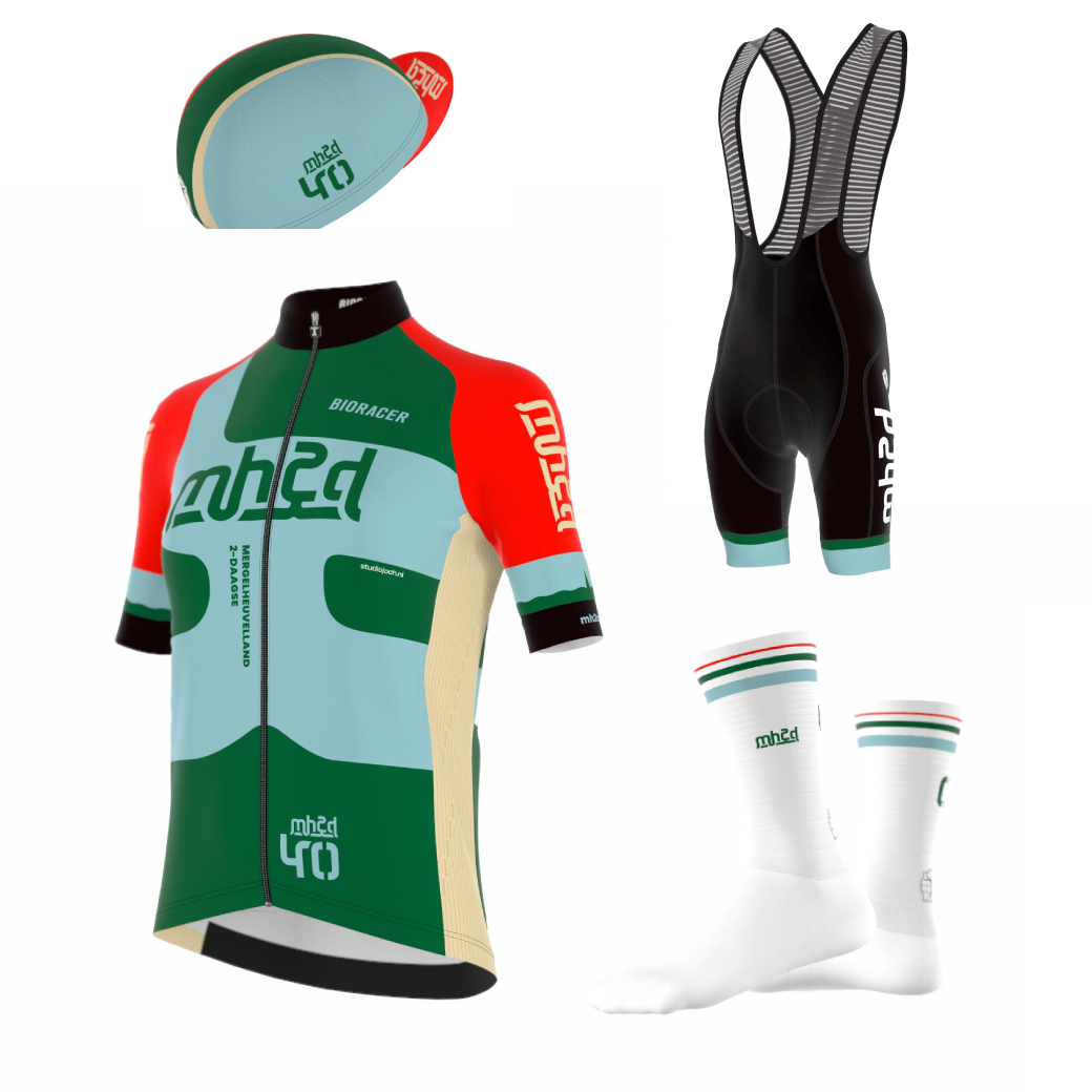 Op de mouw van het wielershirt schittert de horizon van St. Geertruid, de vaste thuisbasis van ons unieke evenement. Werp een blik richting St. Geertruid terwijl je op onze evenementlocatie staat in Libeek en je ziet de iconische kerktoren, de contreien van het Savelbos rondom de Bukel. Een tenue dat verleden, heden en samen fietsen vereeuwigt. Dit tenue, met een volledig op maat gemaakt ontwerp, kent specifieke bestelmomenten. Meer informatie hierover lees je onder aan deze pagina.